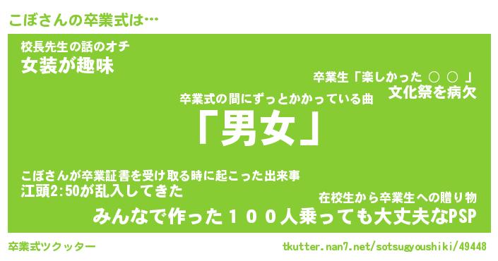 | 男性向けラノベタイトル風あだ名 | 『こぼの憂鬱』『ノーゲーム・ノーコボ』 |