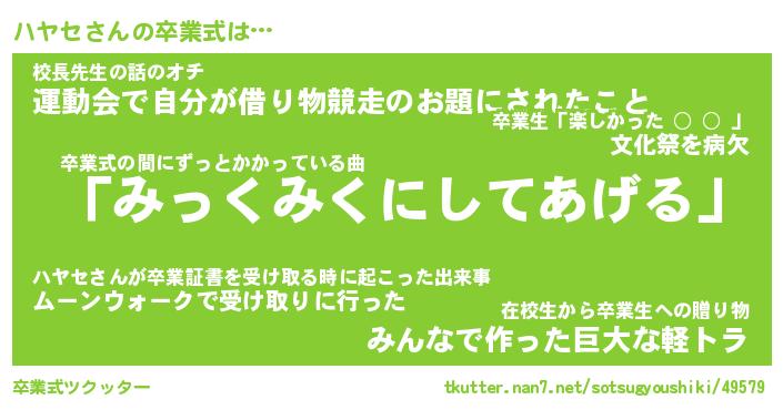 | 意味不明あだ名 | 『ペロリンハヤセ』『ハヤセフォーエバー』 |