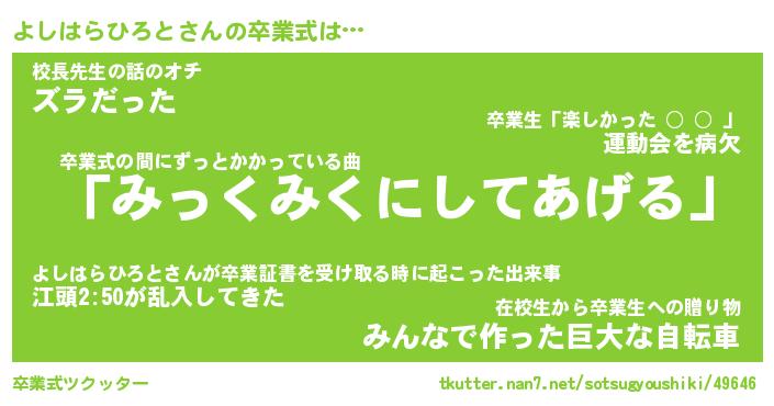 | 胡散臭い通販商品みたいなあだ名 | 『必ず成功するブレスレット…その名も「よしはらひろと」』 |