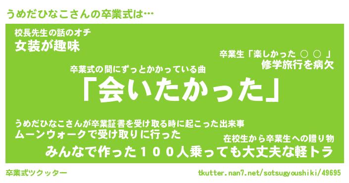 | ヒーロー風カッコイイあだ名 | 『スーパーウメダヒナコ』『天弓騎士ウメ』 |