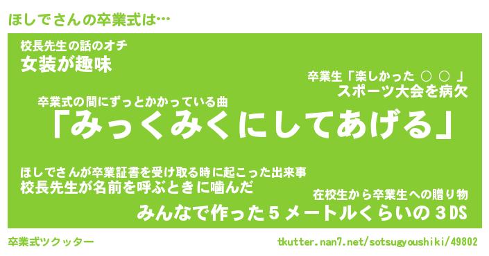 | ヒーロー風カッコイイあだ名 | 『スーパーホシデ』『ウルトラほしでマン』 |