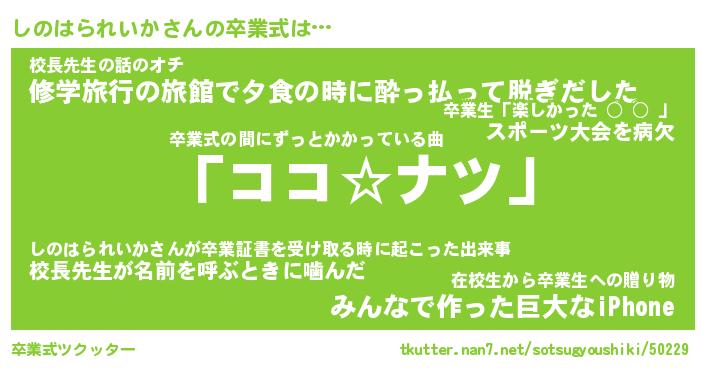 | 恥ずかしいあだ名 | 『プリティーしのはられいか』『しのちん』 |