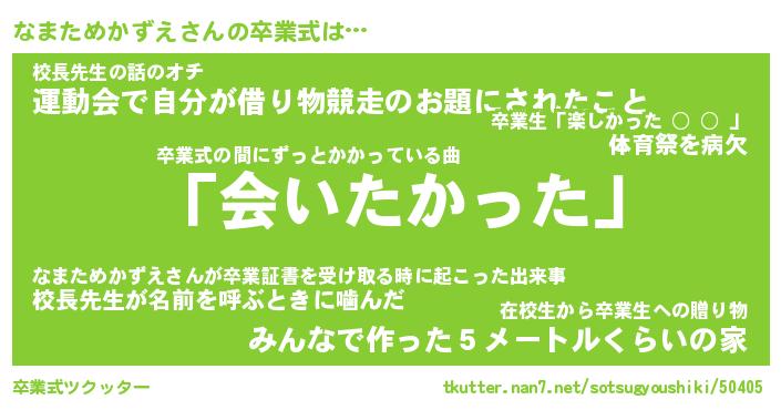 | 恥ずかしいあだ名 | 『プリティーなまためかずえ』『なまちん』 |