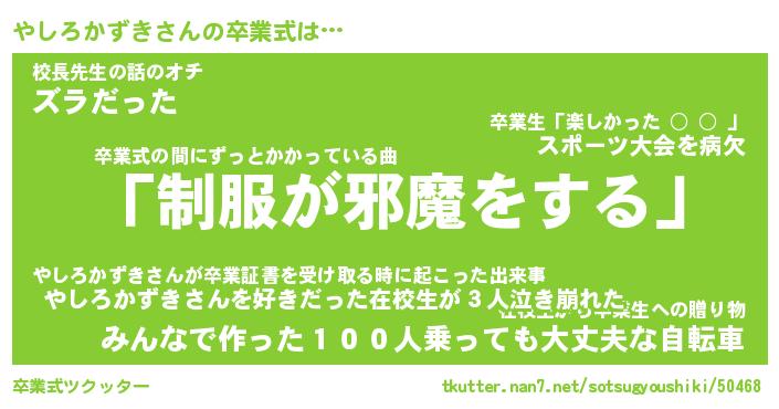 | ヒーロー風カッコイイあだ名 | 『スーパーヤシロカズキ』『天弓騎士ヤシ』 |
