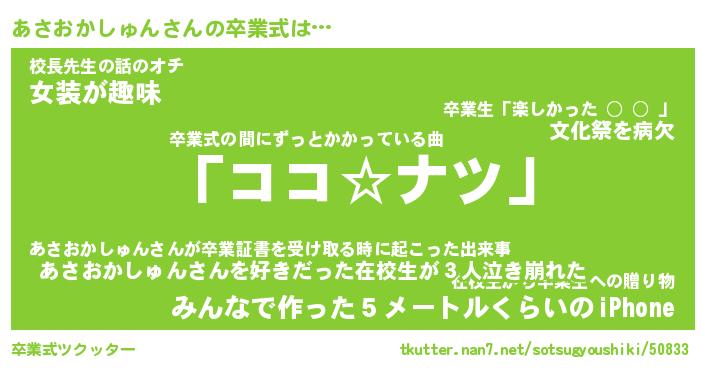 | 伝説のあだ名 | 『不死鳥のスナイパーあさおかしゅん』 |