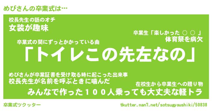| 胡散臭い通販商品みたいなあだ名 | 『必ず成功する霊験あらたかなお札…その名も「めび」』 |