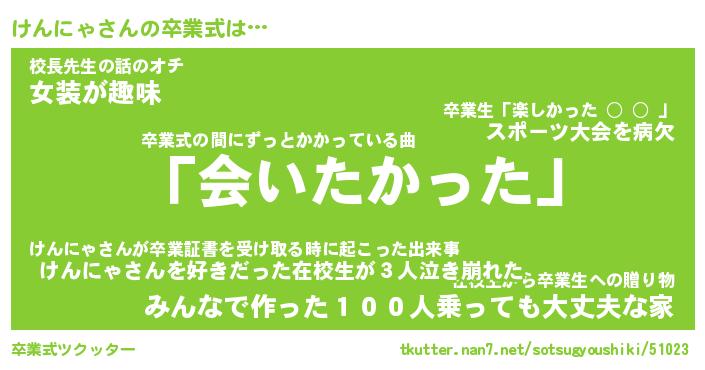 | 意味不明あだ名 | 『ペロリンけんにゃ』『永久保存けんにゃ』 |