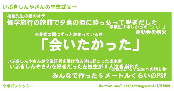 | ヘコむあだ名 | 『いぶにー』『牛乳』『いぶお』 |