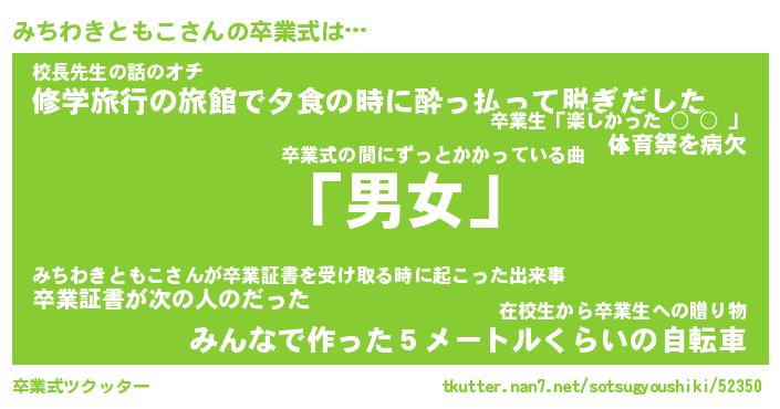 | 伝説のあだ名 | 『伝説のスナイパーみちわきともこ』 |