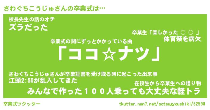 | 伝説のあだ名 | 『不死鳥のスナイパーさわぐちこうじゅ』 |