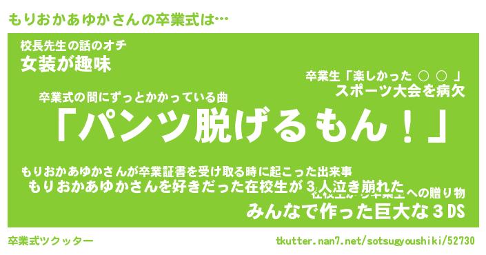 | 伝説のあだ名 | 『不死鳥のスナイパーもりおかあゆか』 |