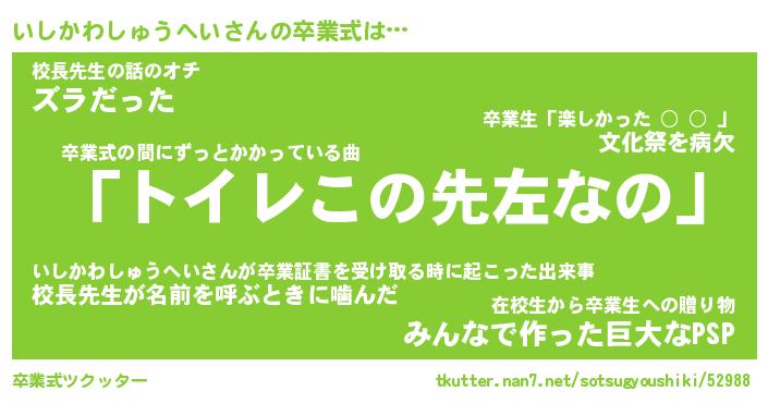 | 胡散臭い通販商品みたいなあだ名 | 『必ず成功するブレスレット…その名も「いしかわしゅうへい」』 |