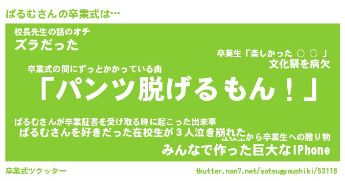 | ヘコむあだ名 | 『ぱるもー』『酢こんぶ』『ぱるを』 |