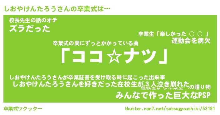 | 胡散臭い通販商品みたいなあだ名 | 『モテモテ間違いなしブレスレット…その名も「しおやけんたろう」』 |