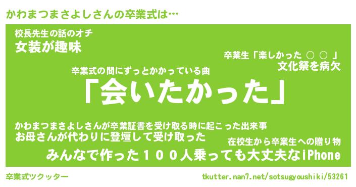 | 伝説のあだ名 | 『不死鳥のスナイパーかわまつまさよし』 |