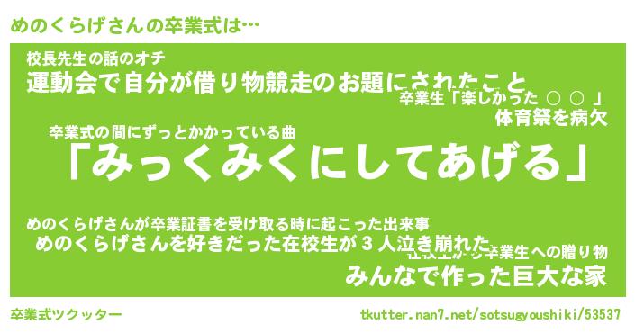 | ヘコむあだ名 | 『めのっふぃ~』『つくし』『めのを』 |