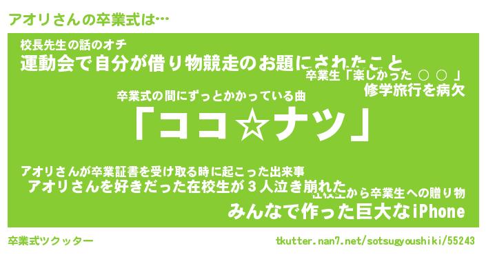 | ヘコむあだ名 | 『アオにゅー』『なまこ酢』『アオを』 |