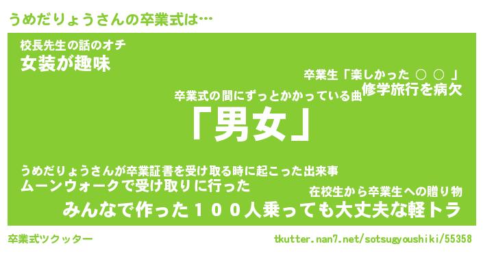 | ピコ太郎風あだ名 | 『ウコ太郎』『ピウ八郎』『ウメ史郎』 |