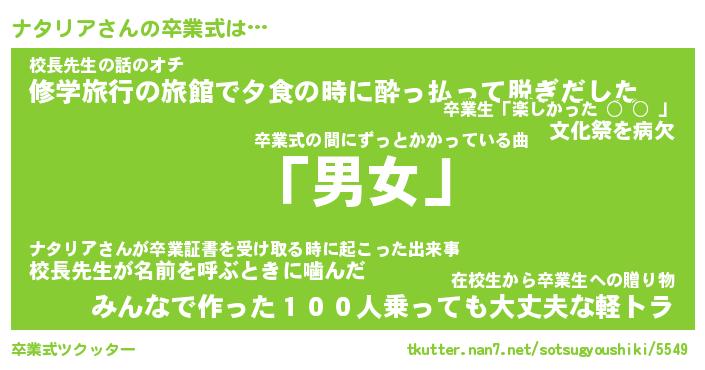 | 胡散臭い通販商品みたいなあだ名 | 『必ず成功するブレスレット…その名も「ナタリア」』 |