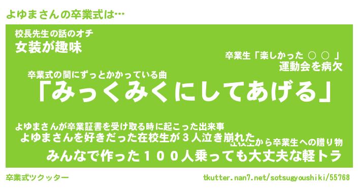 | 胡散臭い通販商品みたいなあだ名 | 『必ず成功する霊験あらたかなお札…その名も「よゆま」』 |