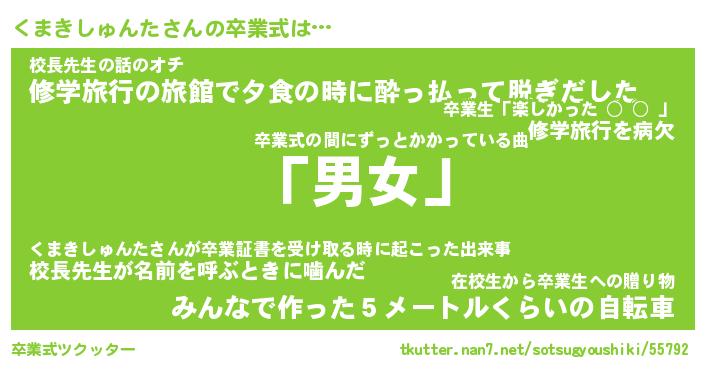 | 伝説のあだ名 | 『伝説のスナイパーくまきしゅんた』 |