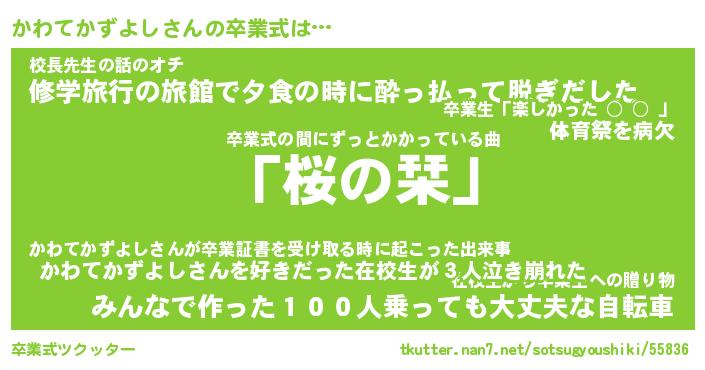 | 伝説のあだ名 | 『封印されしスナイパーかわてかずよし』 |