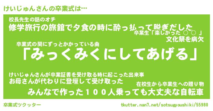 | 伝説のあだ名 | 『伝説のスナイパーけいじゅん』 |