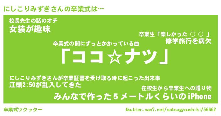 | 伝説のあだ名 | 『不死鳥のスナイパーにしこりみずき』 |