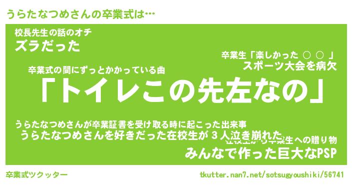 | 胡散臭い通販商品みたいなあだ名 | 『必ず成功するブレスレット…その名も「うらたなつめ」』 |