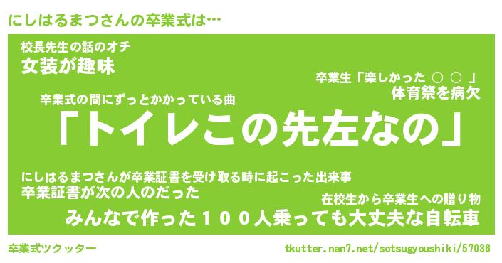 | 男性向けラノベタイトル風あだ名 | 『にしはるまつの憂鬱』 |