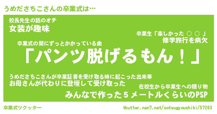 | ピコ太郎風あだ名 | 『ウコ二郎』『ピウ六郎』『ウメ二郎』 |