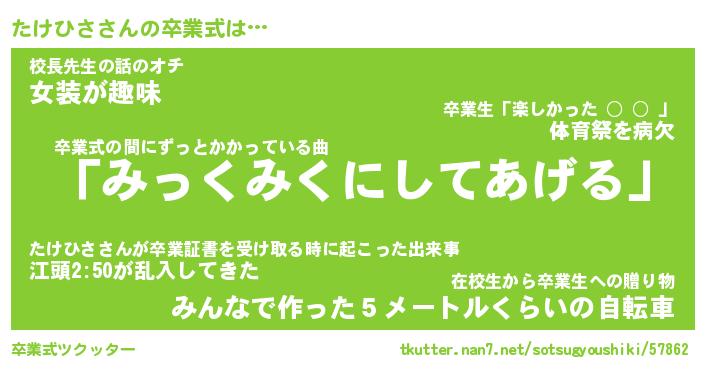 | ヘコむあだ名 | 『たけっふぃ~』『酢こんぶ』 |