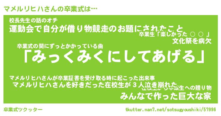 | ヒーロー風カッコイイあだ名 | 『スーパーマメルリヒハ』『幻影騎士マメ』 |