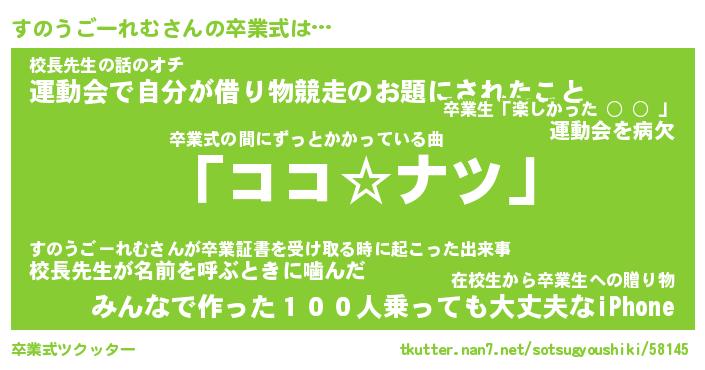 | ピコ太郎風あだ名 | 『スコ六郎』『ピス一郎』『スノ六郎』 |
