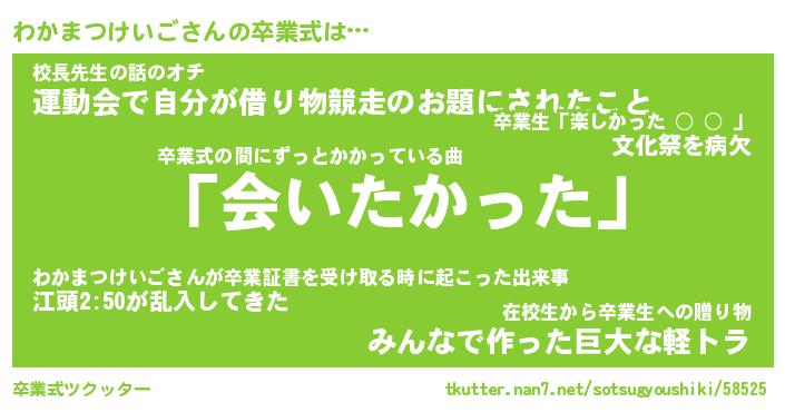 | 伝説のあだ名 | 『不死鳥のスナイパーわかまつけいご』 |