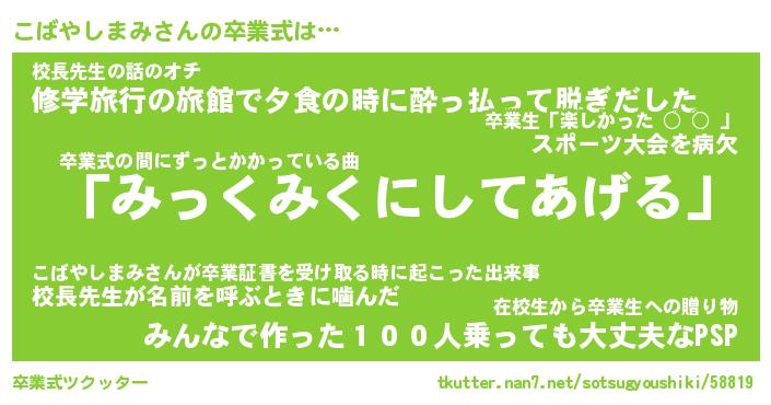 | ヘコむあだ名 | 『こばもー』『豆乳』『こばっちょ』 |