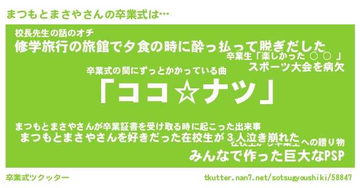 | ヘコむあだ名 | 『まつふぇ~』『なまこ酢』『まつお』 |