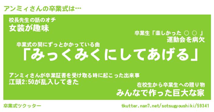 | 意味不明あだ名 | 『ペロリンアンミィ』『永久保存アンミィ』 |