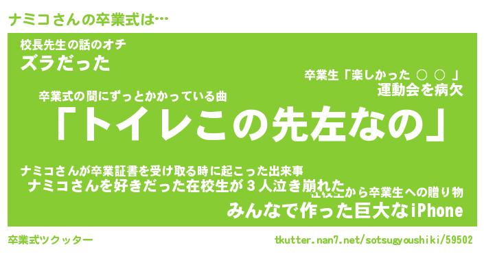 | 胡散臭い通販商品みたいなあだ名 | 『必ず成功するブレスレット…その名も「ナミコ」』 |