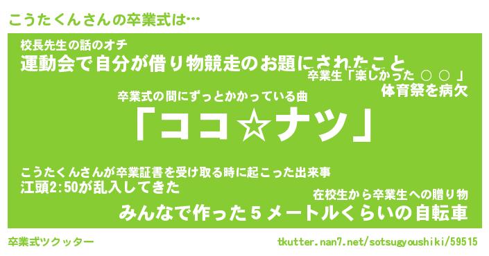 | ヘコむあだ名 | 『こうにー』『つくし』『こう太郎』 |