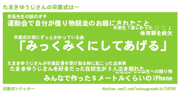 | 恥ずかしいあだ名 | 『プリティーたまきゆうじ』『たまっちょ』 |
