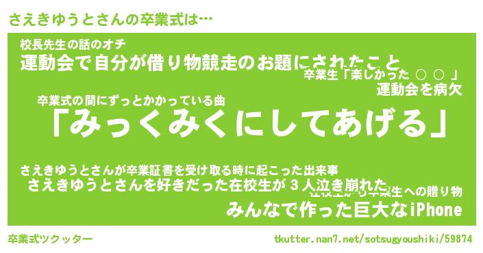 | 胡散臭い通販商品みたいなあだ名 | 『必ず成功する霊験あらたかなお札…その名も「さえきゆうと」』 |