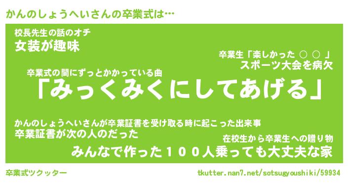 | 胡散臭い通販商品みたいなあだ名 | 『必ず成功する霊験あらたかなお札…その名も「かんのしょうへい」』 |