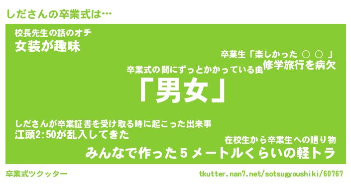 | ピコ太郎風あだ名 | 『シコ一郎』『ピシ四郎』『シダ二郎』 |
