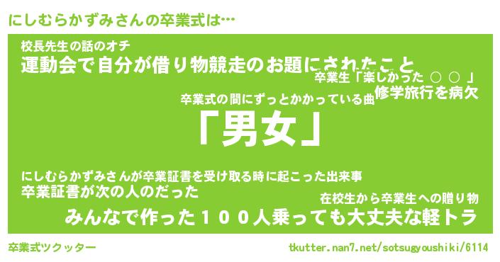 | 男性向けラノベタイトル風あだ名 | 『にしむらかずみの憂鬱』 |
