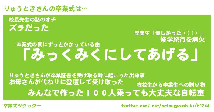 | 胡散臭い通販商品みたいなあだ名 | 『必ず成功する霊験あらたかなお札…その名も「りゅうとき」』 |