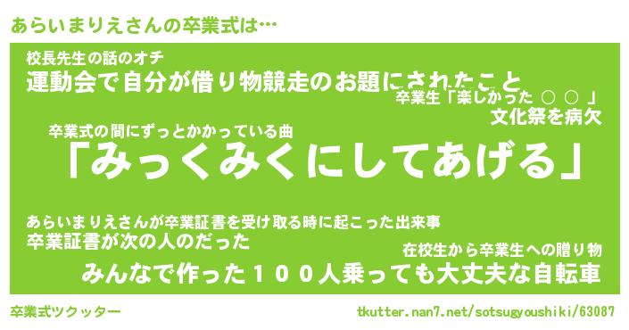 | 胡散臭い通販商品みたいなあだ名 | 『必ず成功するブレスレット…その名も「あらいまりえ」』 |