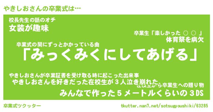 | 伝説のあだ名 | 『伝説のスナイパーやきしお』 |