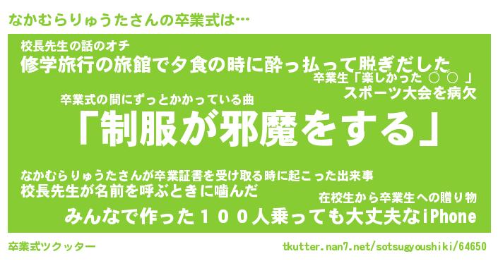 | ヒーロー風カッコイイあだ名 | 『スーパーナカムラリュウタ』 |