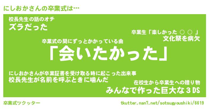 | ヘコむあだ名 | 『にしもー』『なまこ酢』『にしを』 |